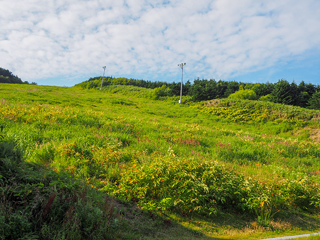 冬はスキー場になっていそうな斜面。