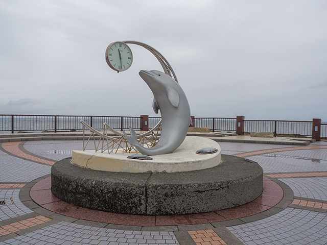 公園では銀のイルカさんがお出迎え。