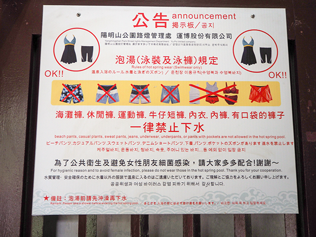 北投温泉には地獄谷公園と、足湯広場、そして水着着用の公衆露天風呂があるのだ。