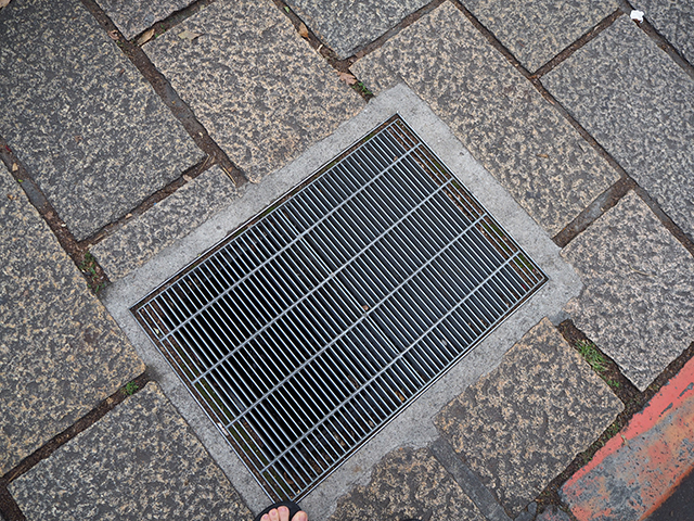排水溝の網蓋から熱気が出ていた。ビーサンの脚に温かい。