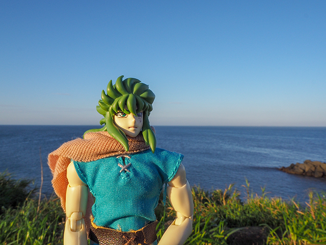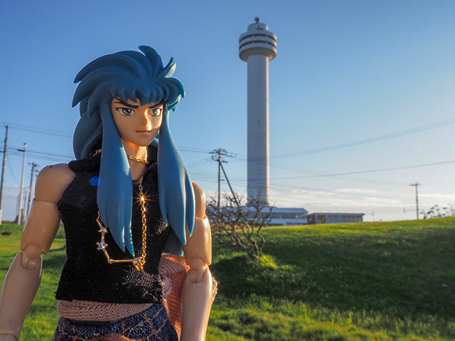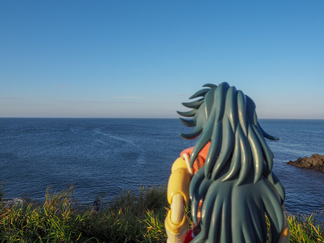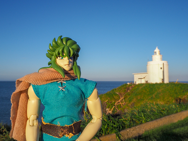 灯台と私をやりたいが、自分の影が映りこむ…。