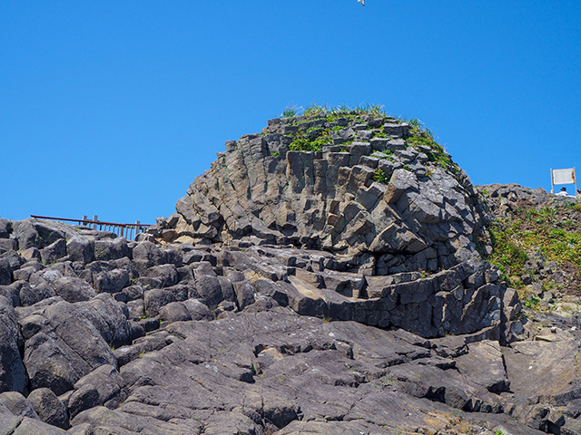 「所謂放射状節理の玄武岩で、ここまで大きくて形が丸いのは珍しいんだそうな」