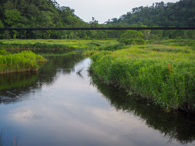 やがて沼のような川が見えて来た。