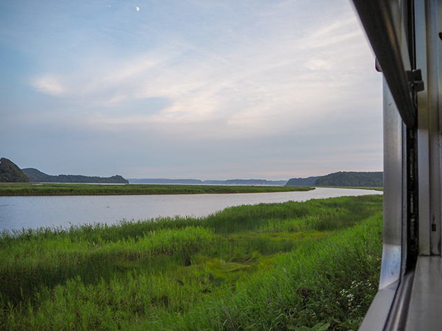 夕刻なのでトワイライトアワーよ、良い絵を撮るわよ!と意気込んでいたが、車窓からそれを撮るのは何かと厳しいものもある。
