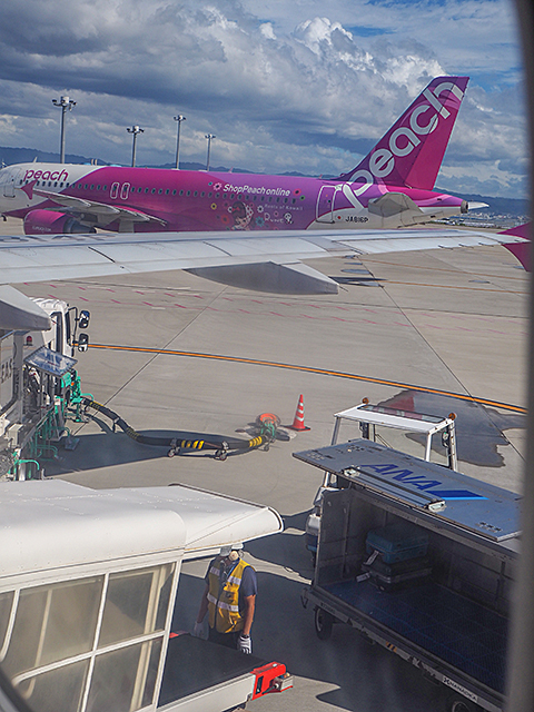 我らがLCCピーチには基本優先登場と言うシステムが無く、窓際席からの搭乗案内となる。