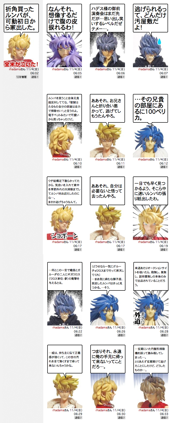 傑作選に続き、なかなかじわじわ来るルンバ編。WSTアイオリアの斜め上を行く電子ペットへの愛情が炸裂する。