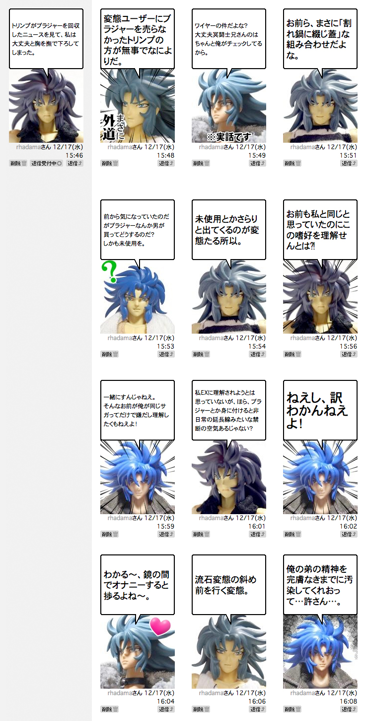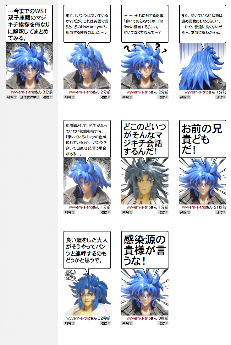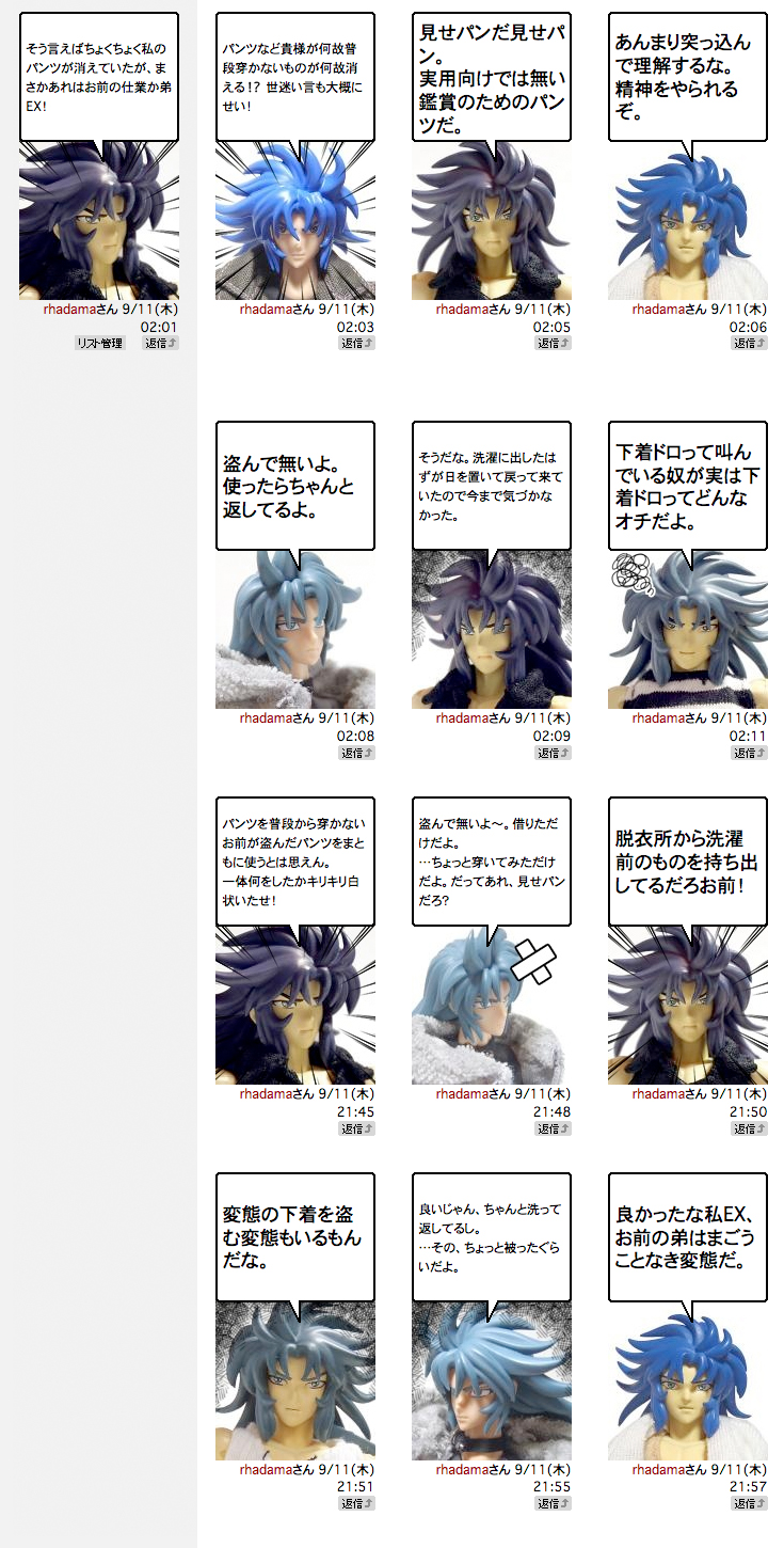 2013年現在、サガEXはノーパン天国双子座類の中で唯一穿いている男だった。