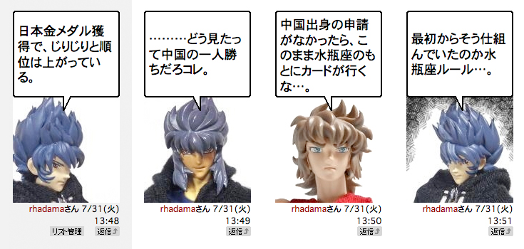 オリンピックで聖闘士カードを賭けてみたが、盛り上がりは今ひとつ。