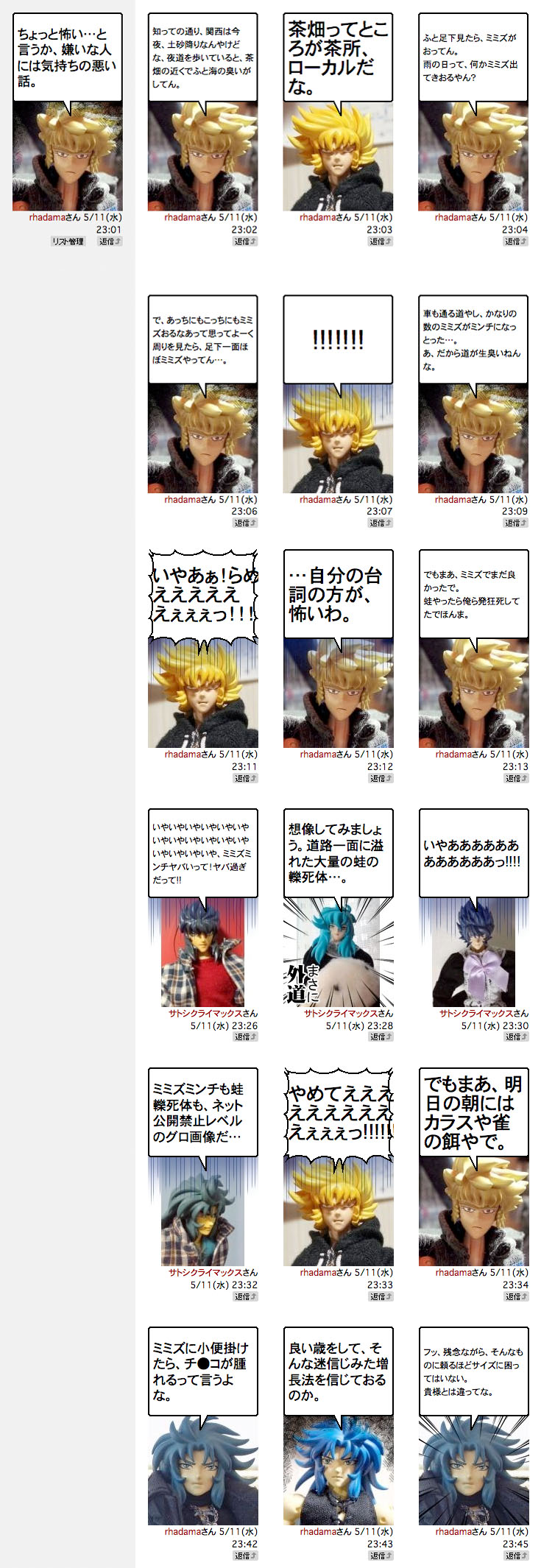 …ところでミミズサイズのチ●コって、いっぱい生えているのしか想像が付かない…。それは触手プレイだ。