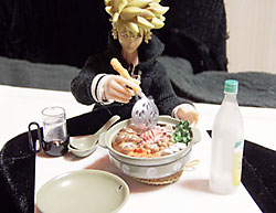 一人鍋。前回もそうだが、この人はよく一人で鍋をやっている。