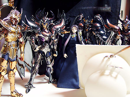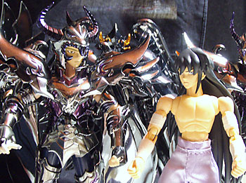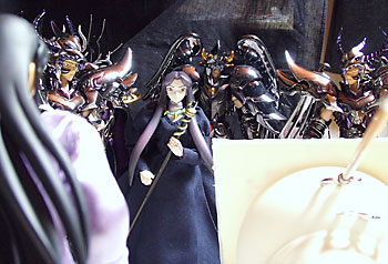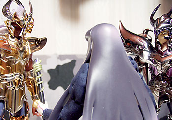三巨頭に鏡開きを教わる青銅聖闘士。