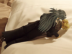 泊まれないと聞いて枕で不貞寝をするラダマイス。