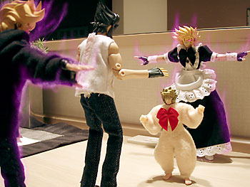 メイド服でドン引きされ、東のラダに擦り寄るチビ。