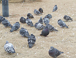 寒そうに丸まる鳩の群発見。