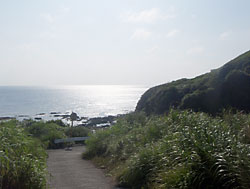 間違ってダゴンの岩場に降りないよう次の道から海に降りる。