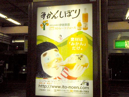 改札を潜ってすぐ目に飛び込み『みかんしぼり』。