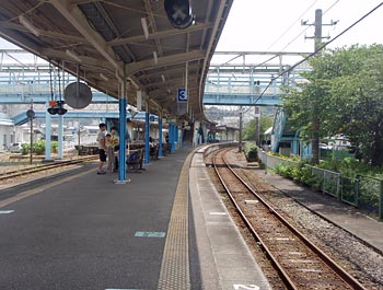 で、連れと協議した結果、隣の駅の湯川が結構良い景色だったので湯川まで行こうかと言う話になったが、湯川行きの電車は何と1時間半後…。バスも今出たばかり。
