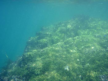 で、対岸に向かおうとしたのだが、透明度が低くて前が見えない上のでどこに向かって泳いでいるのか解らない。