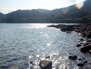 しかし、対岸まで泳ぐのは体力的にごめんだったので、ここは徒歩で沿岸沿いに砂浜まで向かう。
