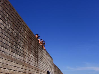 地元の男の子が防波堤から飛び込みをしていました。