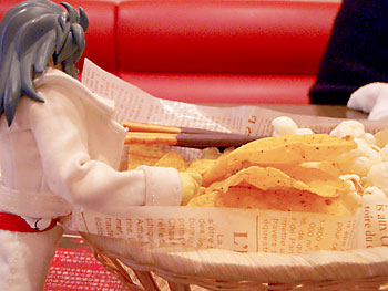 勝手にパッケージを開けてお菓子にありつく。