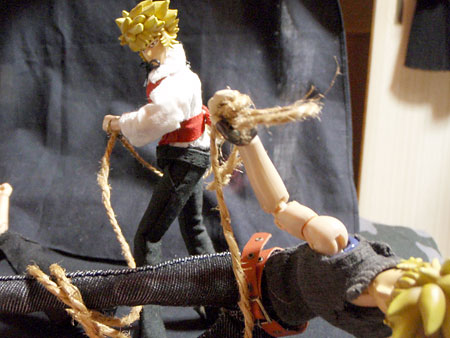 何と、足下のロープを引張られた。このうっかりさん。