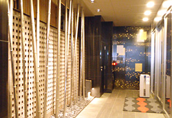 コーポレートカラーを巧みに取り入れた格調高いバスルームです。