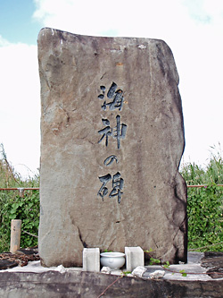 …で、島内を反時計回りで進んだ管理人、真泊港で石碑を発見した。