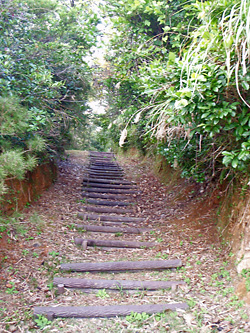 道路の脇に、上へと続く階段が。