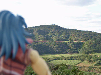 ピンぼけしているがその峰とは宇江城城のことだ。