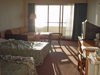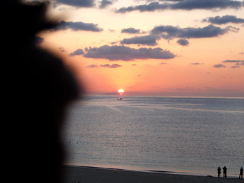 それにしても、早起きして浜に行かなきゃ見れない日の出が、ホテルの部屋からぬくぬくと見られるとは…。