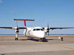 ワイルドに徒歩で飛行機まで向かい、タラップに搭乗だ。