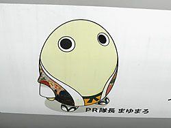 車両に貼ってある京都国民文化祭2011のマスコットキャラクターに釘付けだった。