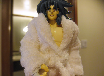 で、ドヤ顔弟もシャワーで潮を流した後、バスローブ姿で登場。