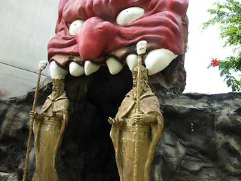 人間のスタッフではなく、センサーで人が来たのを感知して電動で動いたり音声を流す仕掛けが殆ど。