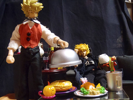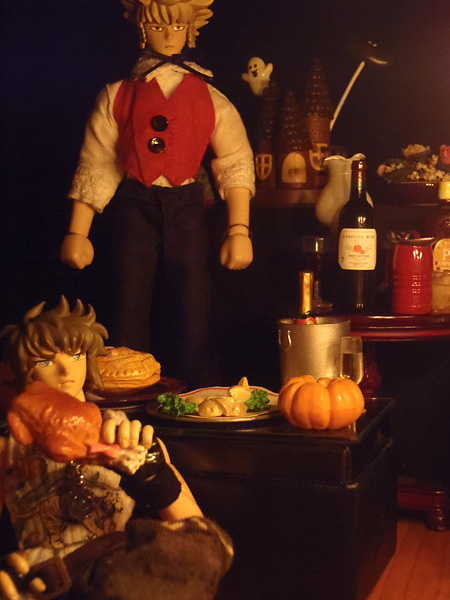 (…どうでも良いからロースト・チキンから手を離しやがれ)