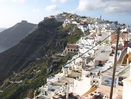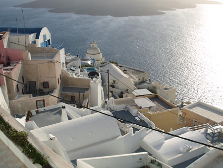 夕日とフィラの町並み。