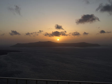 フィラから夕日を見るとネア・カメニかティラシアに隠れて日没が見られないので、日没はイアまで行く人も多い。