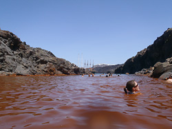 …で、パレア・カメニにあるホット・スプリングは入り江で浅いので船では入り込めない。