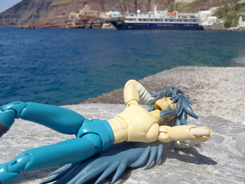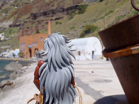 サントリーニ島の鬼、港を徘徊。