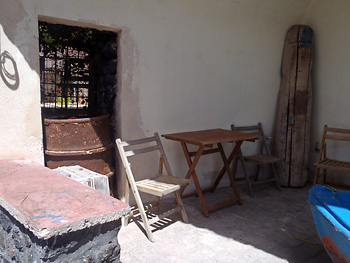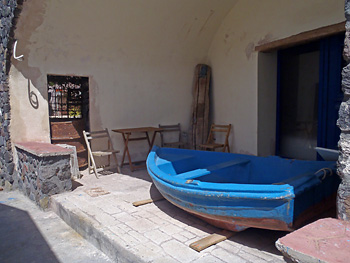 ガレージのようなところにボートが置いてあった。