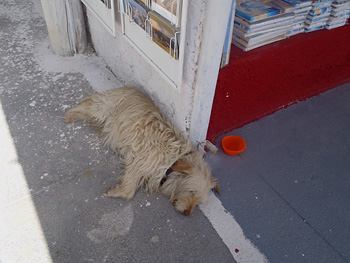 お土産物やの軒先では、犬が寝ていた。