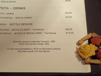 ルームサービスのボトルのお代はほんの110ユーロ。あと、ルームチャージも要らなかったか?