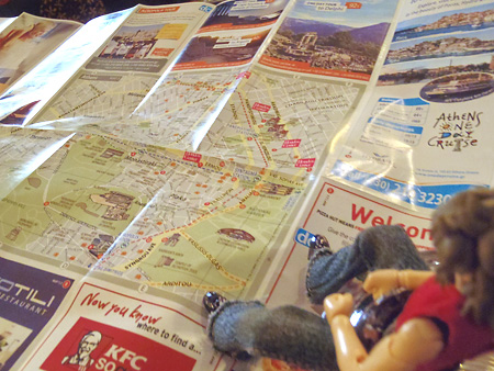 で、フロントに通りかかりがてらアテネ市内の地図と、鉄道の路線図を持って来る。
