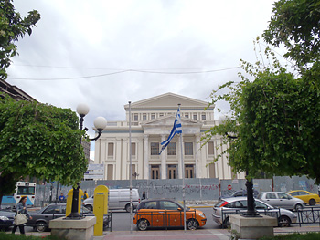 ディモクラティアス通りをゼア湾方向に向かうと、広場と教会に行き着いた。