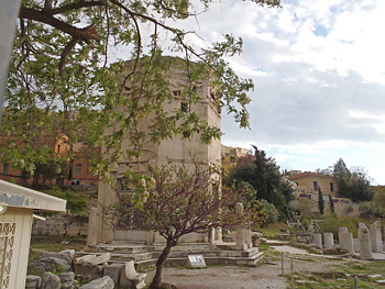 一世紀に建てられた、日時計・水時計・風見の三役をこなしていた塔だ。