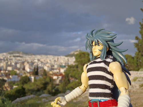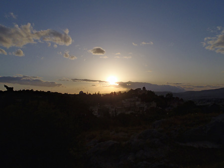 夕日とアクロポリスが見渡せるちょっとした丘なのだが、この辺で星矢は修行していたのかと思うと更に腹筋トレーニング状態。