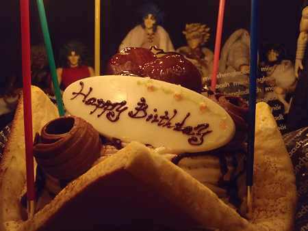 前回はケーキの無い状態で、本当に誕生日企画なのか疑わしい勢いだったが、ここでそれっぽくケーキ登場。