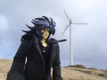 風力発電の風車に行き当たった。