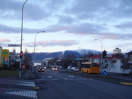 レイキャビクに沈む夕日を眺める。